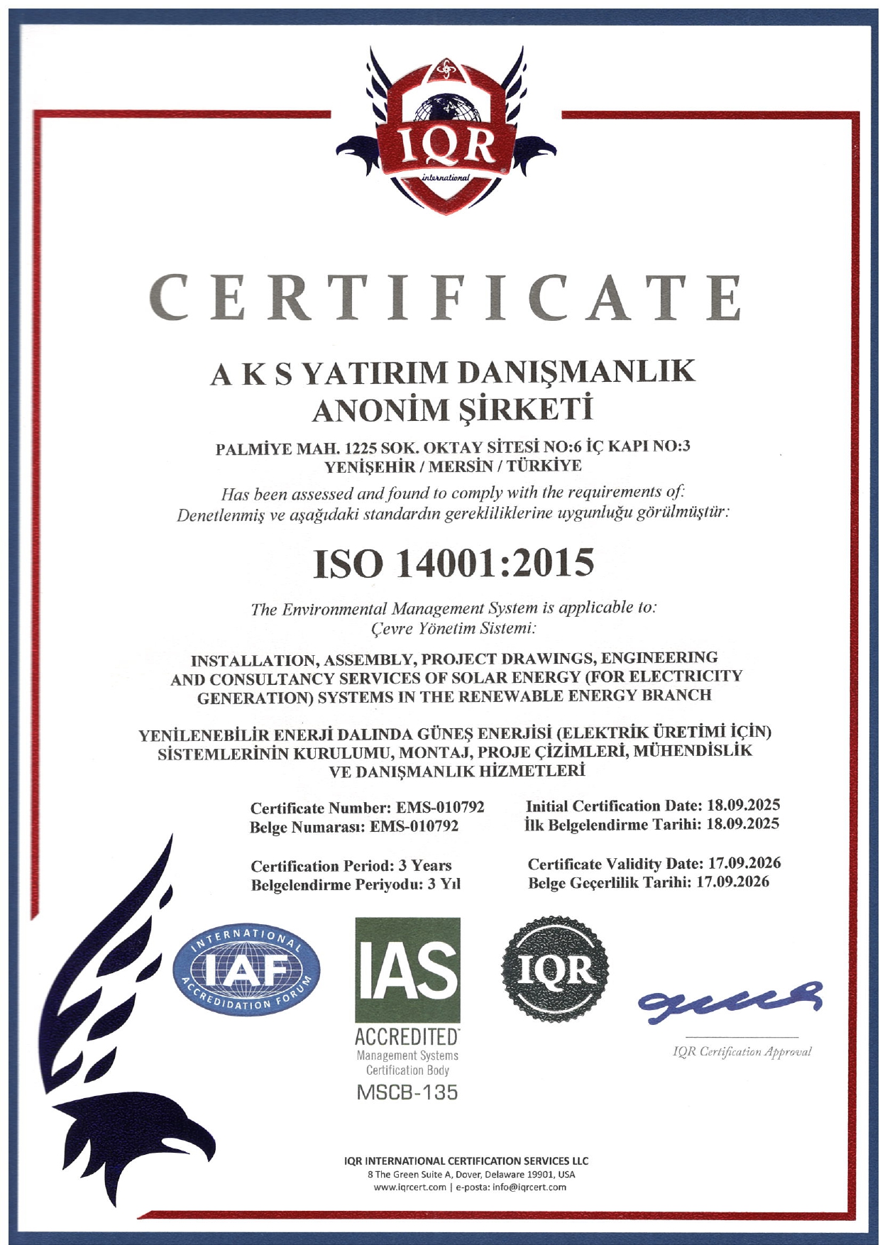 ULUSLARARASI KALİTE BELGELERİ